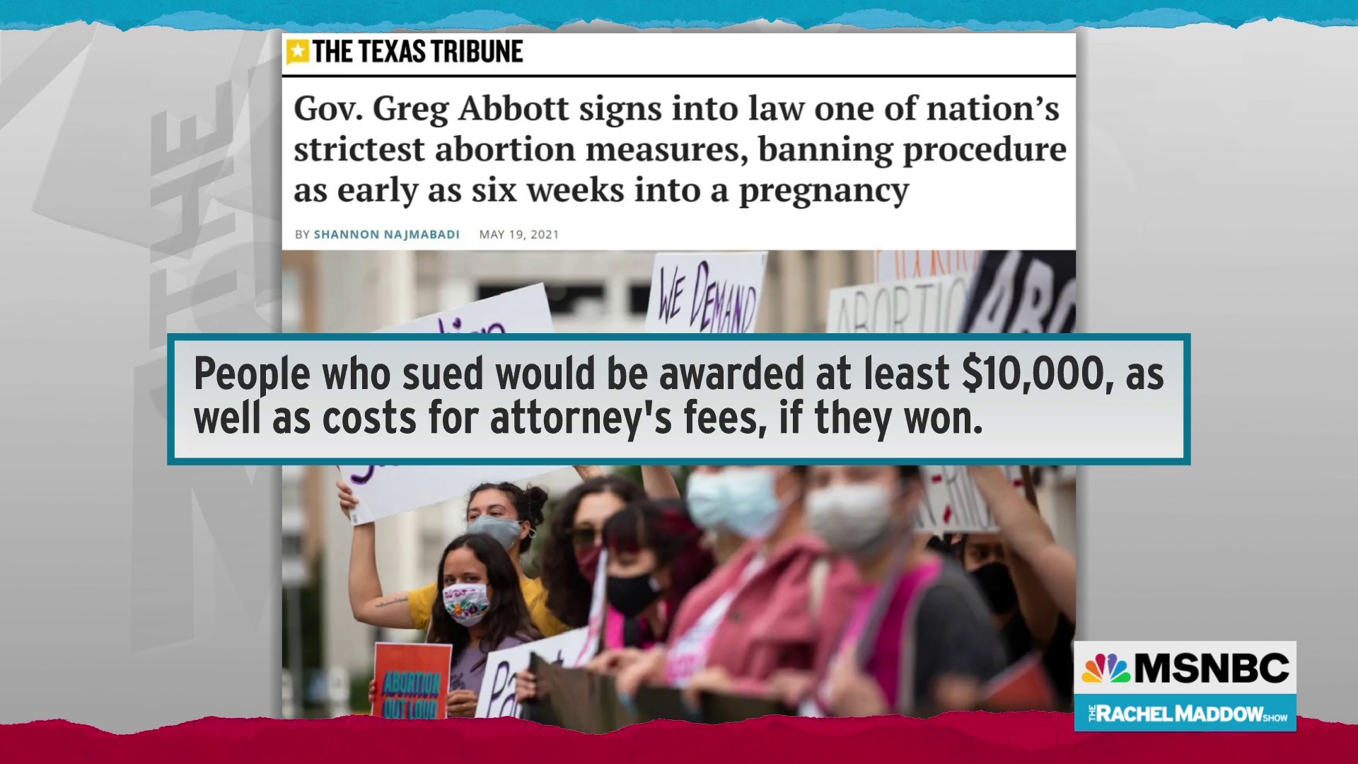 Anyone who successfully sues an abortion provider under this law could be awarded at least 10000.